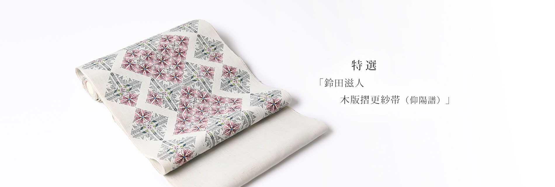 『特選』掲載しました。「鈴田滋人 木版摺更紗帯(仰陽譜)」