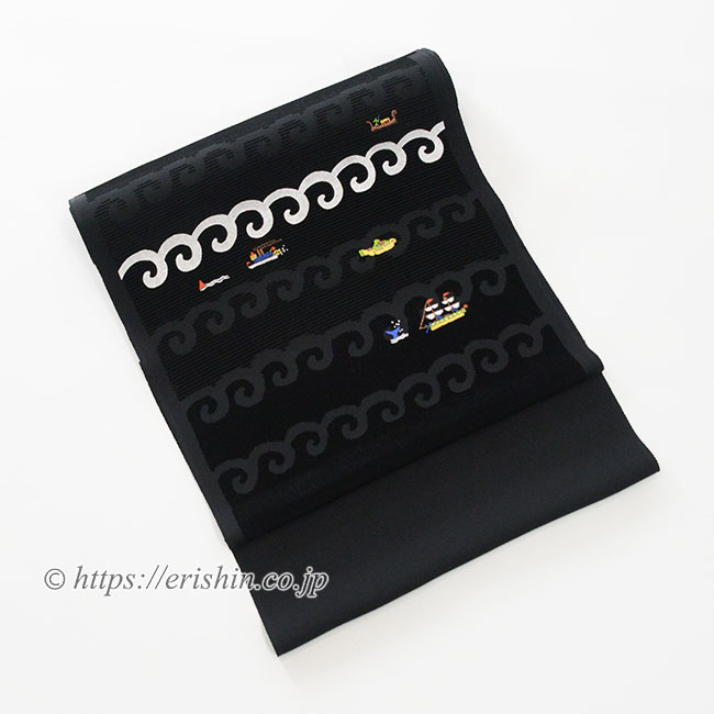 染名古屋帯/切りビロード(プラチナ波と帆船etc)