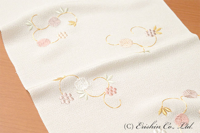 帯揚げ(天神唐草・刺繍/薄クリーム地・縮緬)
