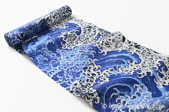 誉田屋源兵衛 浴衣(綿麻・北斎波涛)広巾