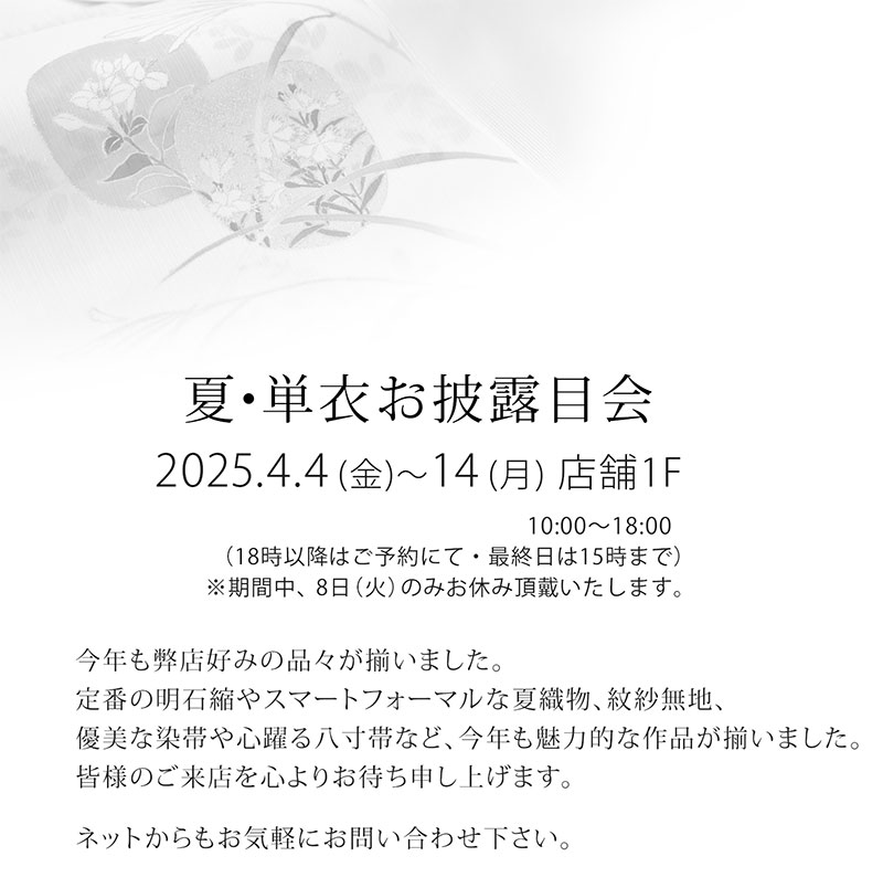 『夏・単衣お披露目会』2025年4月4日~14日 えり新店舗1階にて