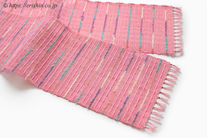 誉田屋源兵衛 半幅帯(芭蕉段織/チェリーピンク・カラフルモヘア)