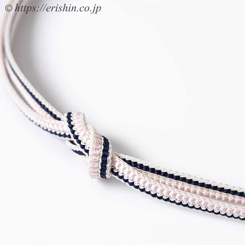 帯締め 源氏立別レース組(ミシン房/鉄紺色×薄桜色)[夏・単衣向]