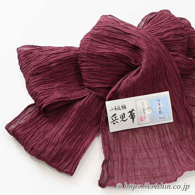 竺仙 麻兵児帯(臙脂/小千谷縮)