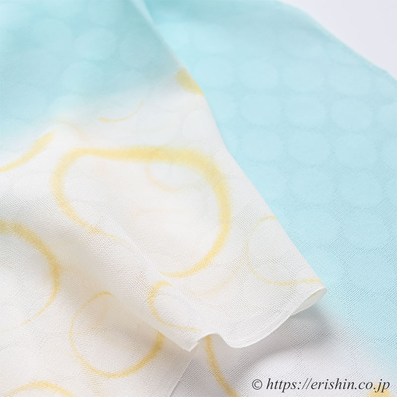 帯揚げ(水玉ぐるぐる/白群色・紋紗)[夏・単衣向]「着物と帯・呉服えり新」