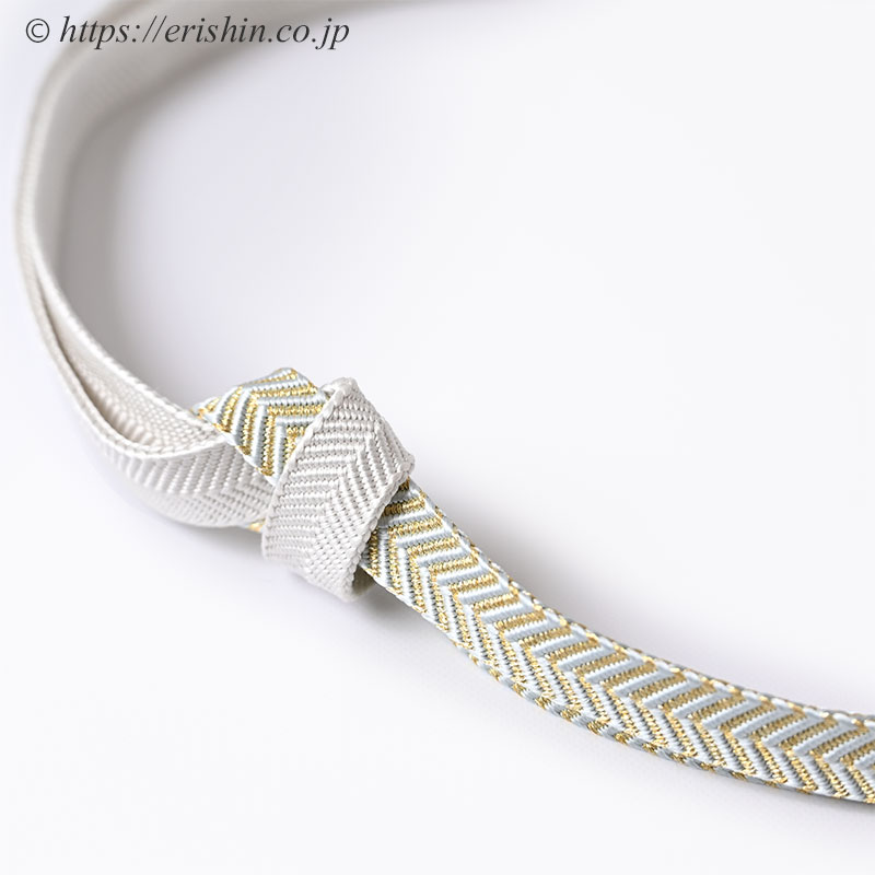 帯締め 笹浪組(白に白縹色と金色の矢羽根段)