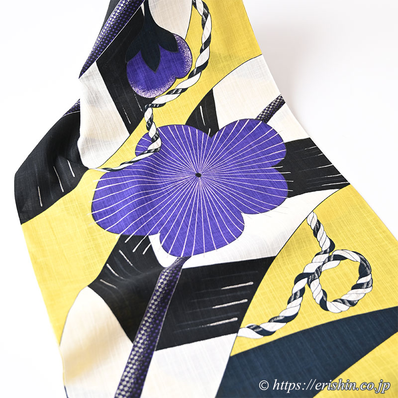 誉田屋源兵衛 浴衣(那須乃与一/黄紫・綿麻)「着物と帯・呉服えり新」