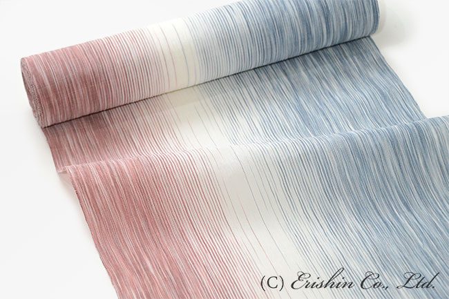 小千谷縮(乱れ縞/蘇芳×舛花色)広巾