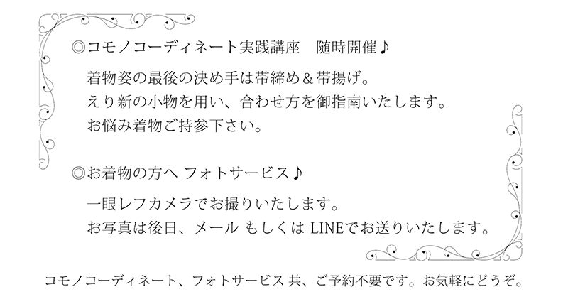 ご来店フォト・着付けレッスン・箪笥出張仕分け