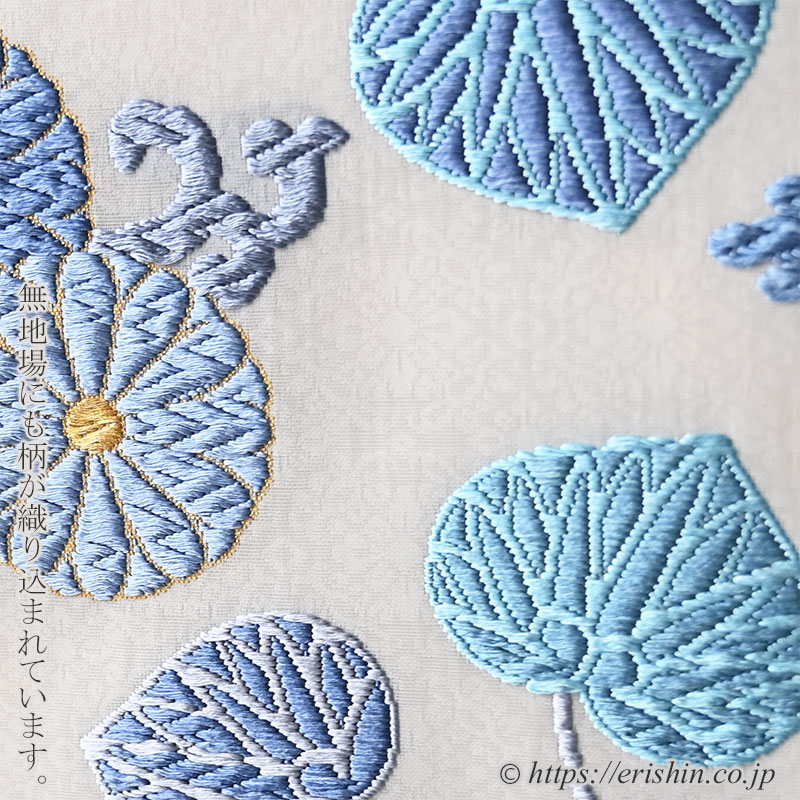 袋帯(菊葵文・唐織/白地に青藤色や青磁色)「着物と帯・呉服えり新」
