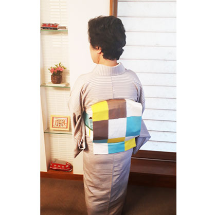 九寸織名古屋帯(石畳文/伊那紬)着姿