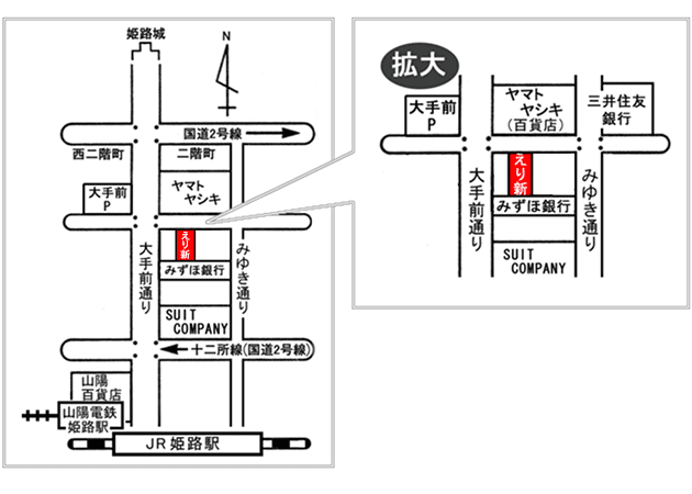 姫路市「着物・呉服えり新」店舗地図
